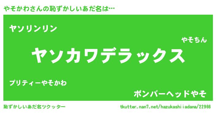 | 男性向けラノベタイトル風あだ名 | 『Re:やそかわから始める異世界生活』 |