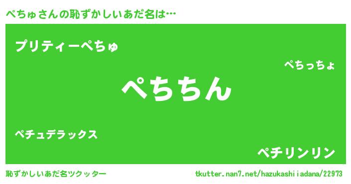 | 意味不明あだ名 | 『永久保存ぺちゅ』『なめこ科ぺちゅ属』 |