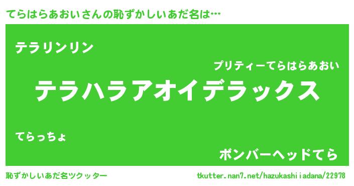 | 胡散臭い通販商品みたいなあだ名 | 『芸能人もオススメする高麗人参…その名も「てらはらあおい」』 |