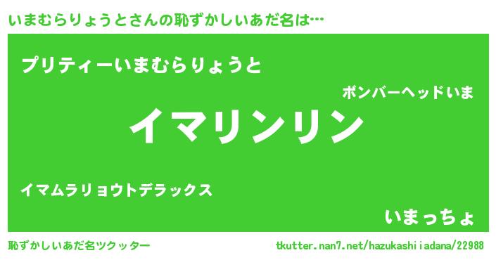 | 女子向けラノベタイトル風あだ名 | 『乙女ゲームの破滅フラグしかない悪役いまむらりょうとに転生してしまった…』 |