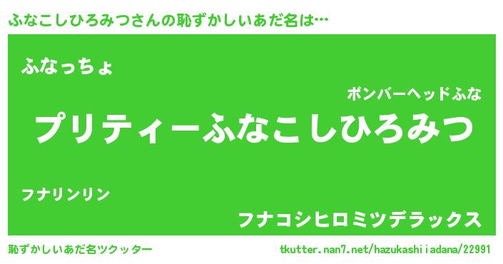 | 意味不明あだ名 | 『住所不定無職ふなこしひろみつ(50歳)』 |