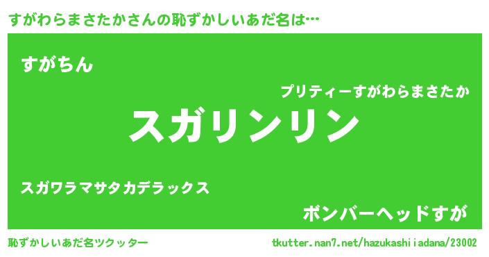 | ヘコむあだ名 | 『すがお』『すがわらまさたか(笑)』 |