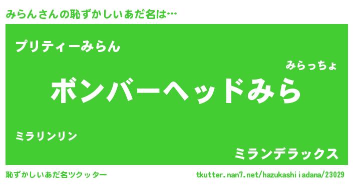 | 欧米人風あだ名 | 『ダニエルみらん』『マイケルみらん』 |