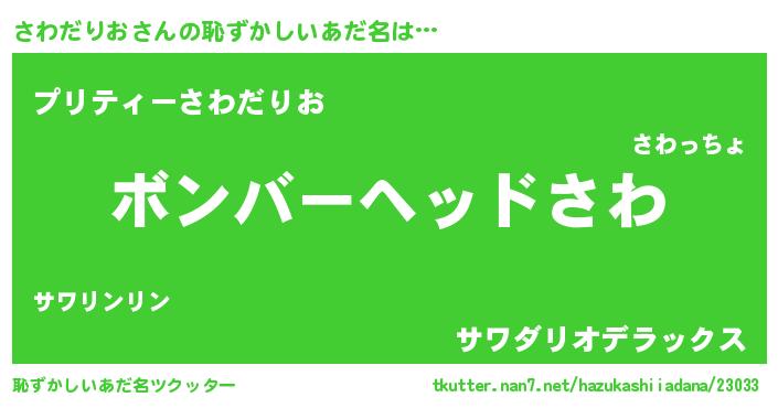 | 意味不明あだ名 | 『住所不定無職さわだりお(86歳)』 |