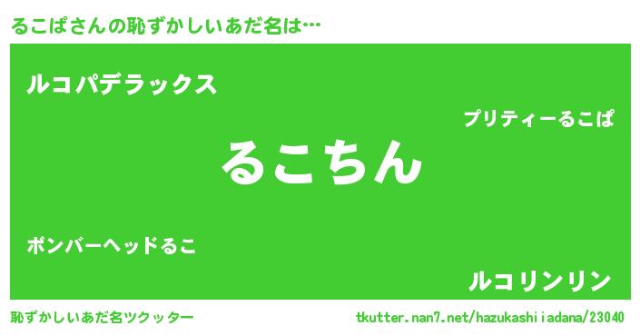 | ヘコむあだ名 | 『るこぱ(笑)』『るこ太郎』『豆乳』 |