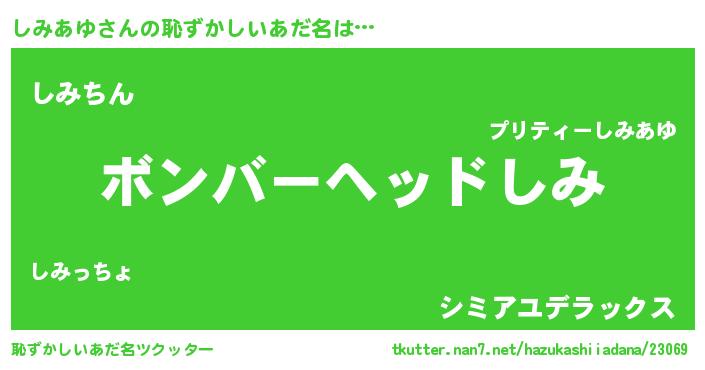 | ヘコむあだ名 | 『しみあゆ(笑)』『しみっふぃ~』 |