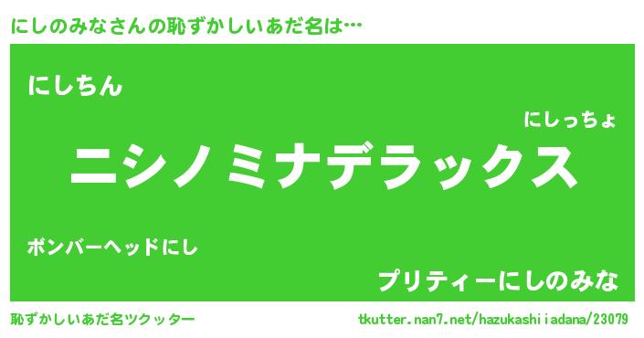 | 可愛いあだ名 | 『にしうちぇる』『にーみん』 |