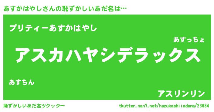 | 意味不明あだ名 | 『自称あすかはやし』 |