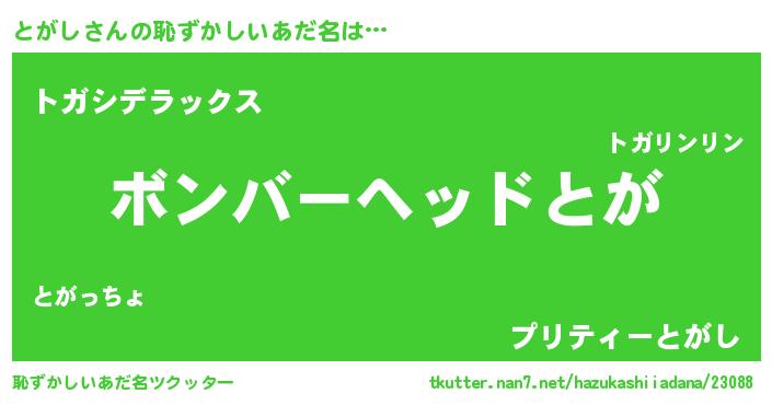 | ヒーロー風カッコイイあだ名 | 『慈愛の使者とがし』『究極戦士トガシ』 |