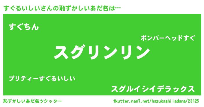 | 男性向けラノベタイトル風あだ名 | 『すぐるいしいの嫁は女の子じゃないと思った?』 |