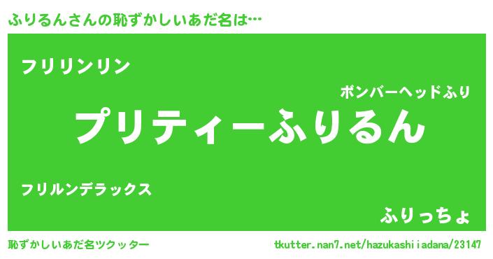 | ヒーロー風カッコイイあだ名 | 『仮面フリダー』『スーパーフリルン』 |