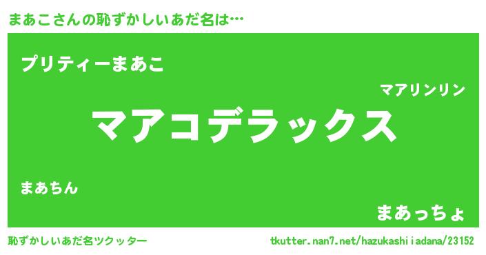 | 男性向けラノベタイトル風あだ名 | 『マアコスレイヤー』『緋弾のマアコ』 |