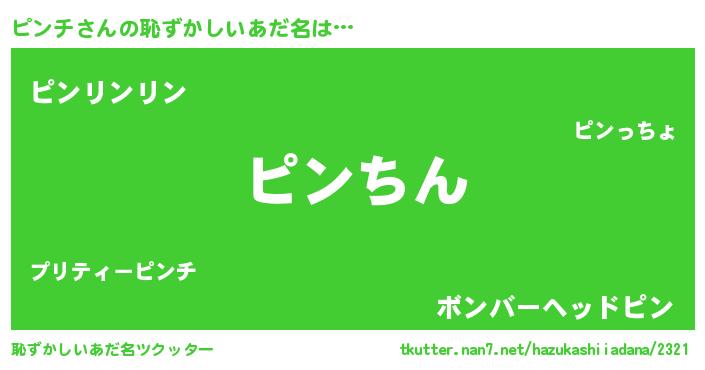 | ヘコむあだ名 | 『ピンチ(苦笑)』『ピンを』 |