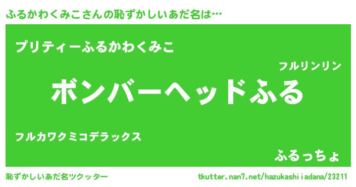 | 男性向けラノベタイトル風あだ名 | 『ノーゲーム・ノーフルカワクミコ』 |