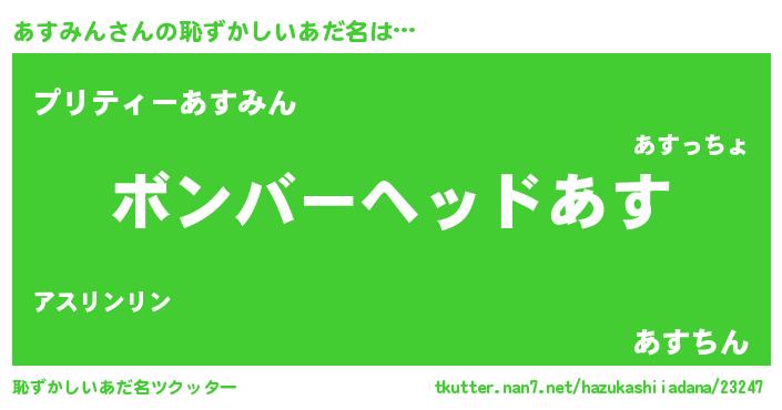 | 欧米人風あだ名 | 『ダニエルあすみん』『マイケルあすみん』 |