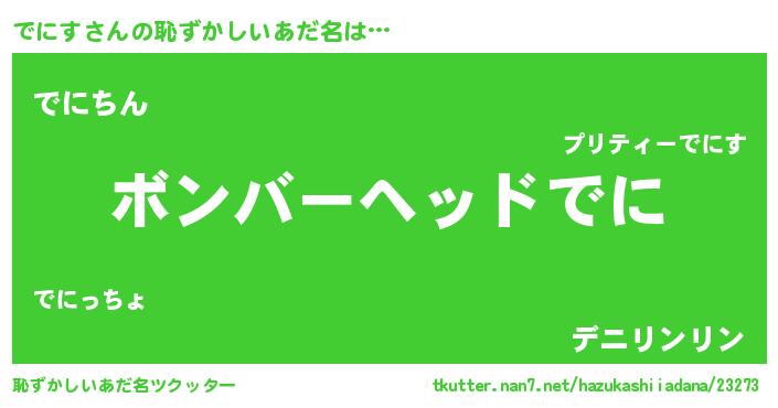 | ヒーロー風カッコイイあだ名 | 『正義の使者でにす』『ネオデニス』 |