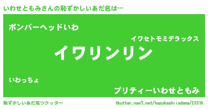 | 胡散臭い通販商品みたいなあだ名 | 『あなたにだけ特別に提供する100年もののヴィンテージワイン…その名も「いわせともみ」』 |