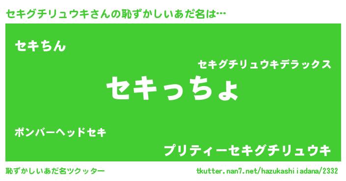 | 欧米人風あだ名 | 『セキグチリュウキクリステル』 |