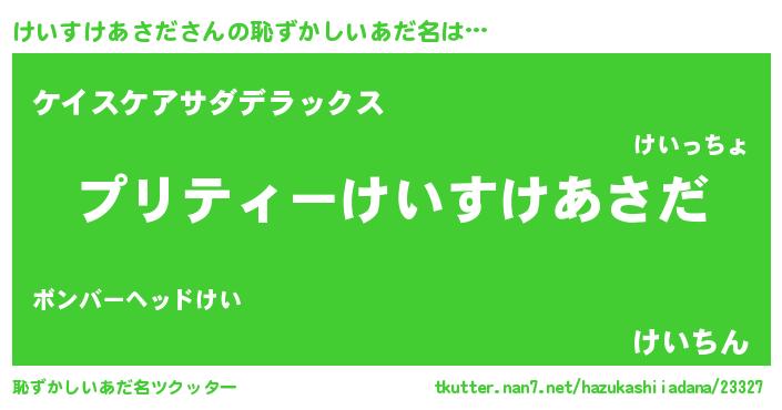 | 男性向けラノベタイトル風あだ名 | 『けいすけあさだの憂鬱』 |