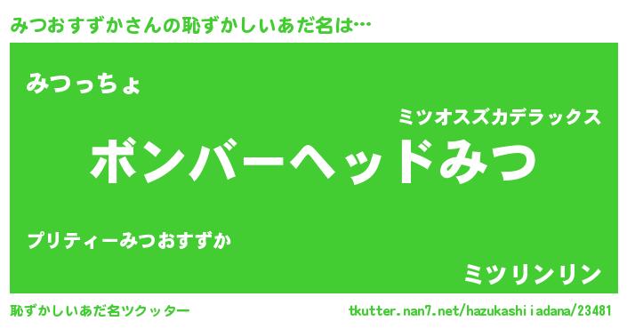 | ヘコむあだ名 | 『なまこ酢』『みつっ子』『みつもー』 |