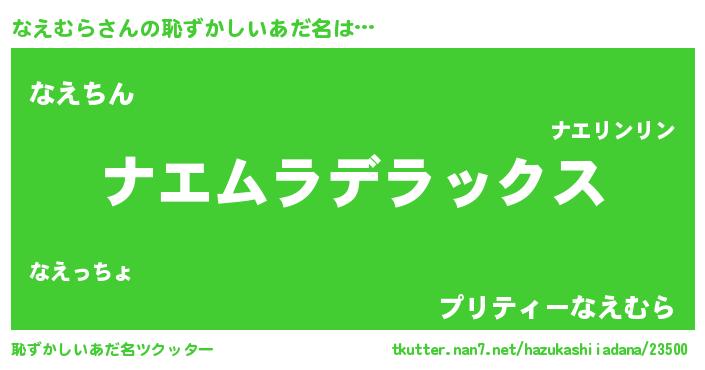 | 意味不明あだ名 | 『住所不定無職なえむら(79歳)』 |