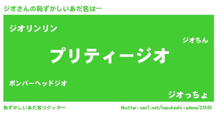 | 男性向けラノベタイトル風あだ名 | 『この素晴らしい世界にジオを!』 |
