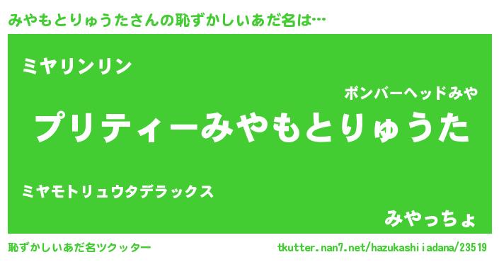 | 意味不明あだ名 | 『住所不定無職みやもとりゅうた(5歳)』 |