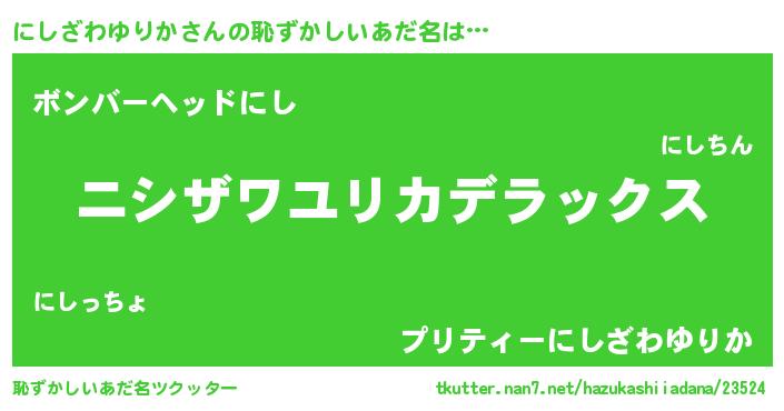 | 男性向けラノベタイトル風あだ名 | 『Re:にしざわゆりかから始める異世界生活』 |
