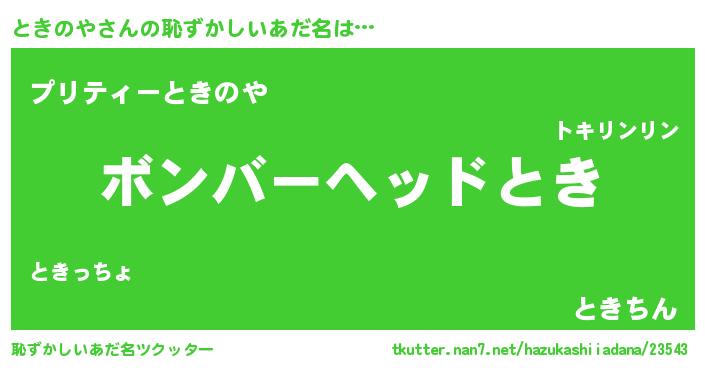 | ヘコむあだ名 | 『ときにゅー』『ときのや(笑)』 |