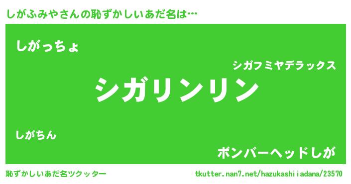 | 意味不明あだ名 | 『とにかく怪しいしがふみや』 |