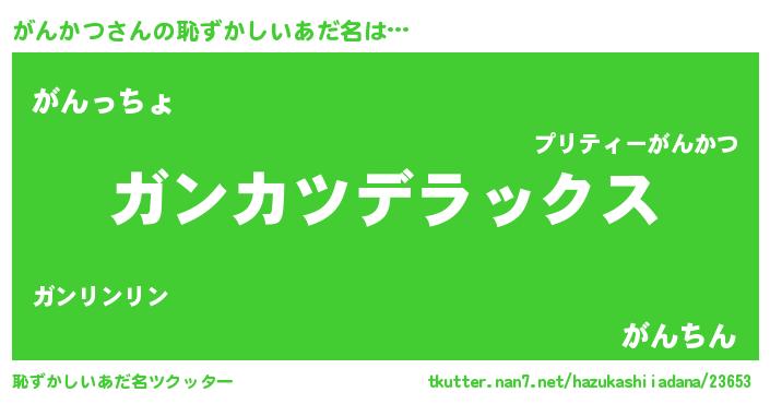 | 意味不明あだ名 | 『自称がんかつ』『がんかつフォーエバー』 |