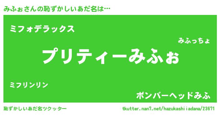 | 胡散臭い通販商品みたいなあだ名 | 『必ず成功する霊験あらたかなお札…その名も「みふぉ」』 |
