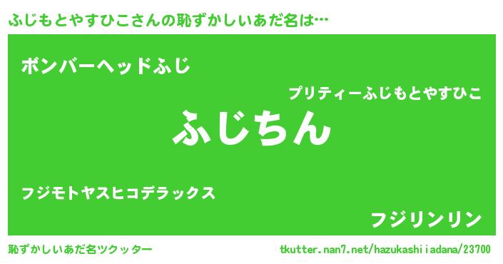 | ヘコむあだ名 | 『ふじもとやすひこ(笑)』『ふじお』 |