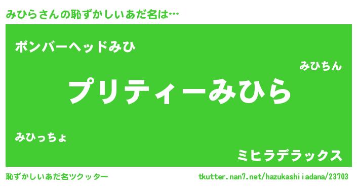 | ヘコむあだ名 | 『みひもー』『みひら(笑)』 |