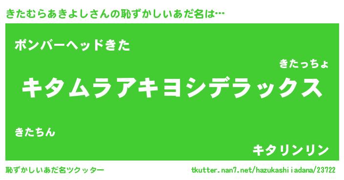 | 男性向けラノベタイトル風あだ名 | 『Re:きたむらあきよしから始める異世界生活』 |