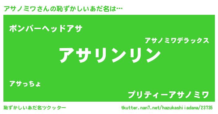 | 意味不明あだ名 | 『とにかく怪しいアサノミワ』 |