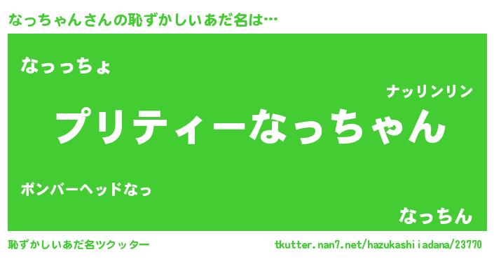 | 胡散臭い通販商品みたいなあだ名 | 『モテモテ間違いなし霊験あらたかなお札…その名も「なっちゃん」』 |