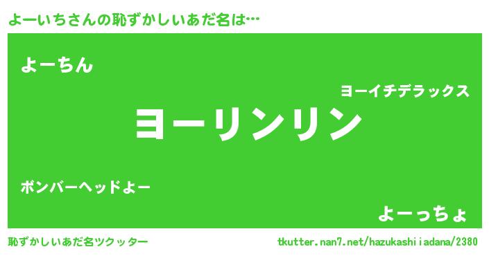 | 意味不明あだ名 | 『とにかく怪しいよーいち』 |