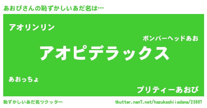 | 男性向けラノベタイトル風あだ名 | 『Re:あおぴから始める異世界生活』 |