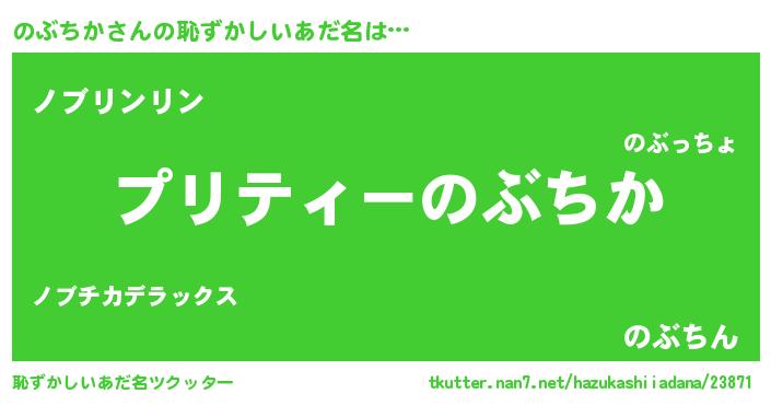| 男性向けラノベタイトル風あだ名 | 『ノブチカアートオンライン』 |