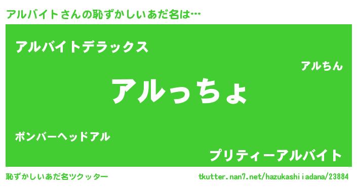 | 意味不明あだ名 | 『アルバイトフォーエバー』 |