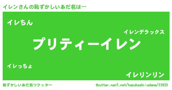 | 女子向けラノベタイトル風あだ名 | 『乙女ゲームの破滅フラグしかない悪役イレンに転生してしまった…』 |