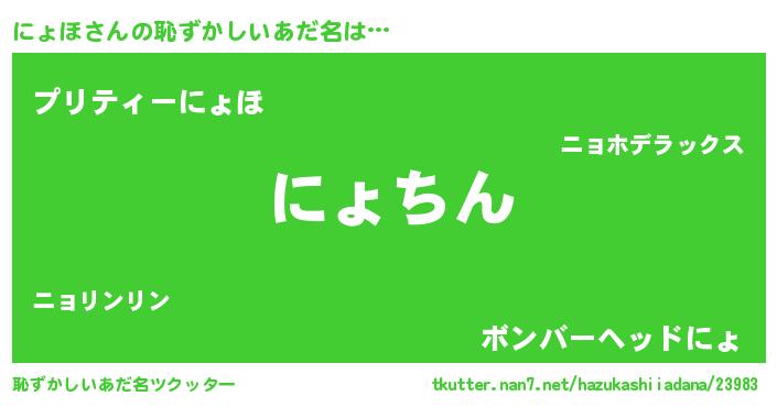 | 意味不明あだ名 | 『永久保存にょほ』『ペロリンにょほ』 |
