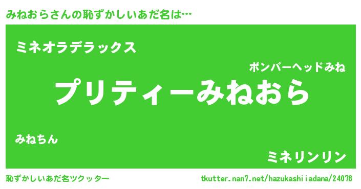 | ヘコむあだ名 | 『みねにー』『みねぷりん』 |