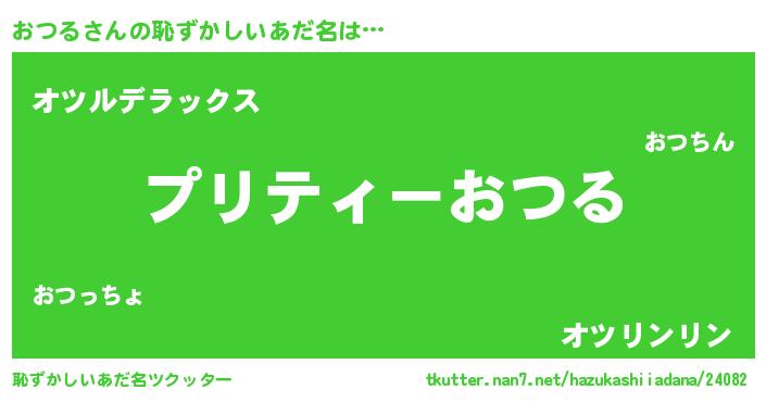 | 女子向けラノベタイトル風あだ名 | 『乙女ゲームの破滅フラグしかない悪役おつるに転生してしまった…』 |