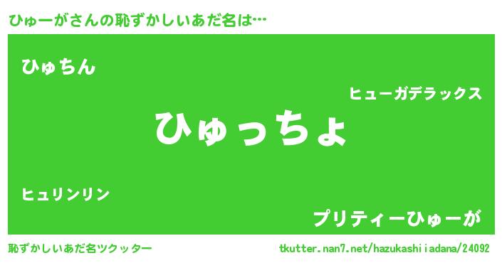 | ヘコむあだ名 | 『なまこ酢』『ひゅーが(笑)』 |
