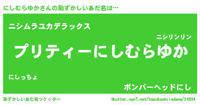 | ヒーロー風カッコイイあだ名 | 『スーパーニシムラユカ』『幻影騎士ニシ』 |