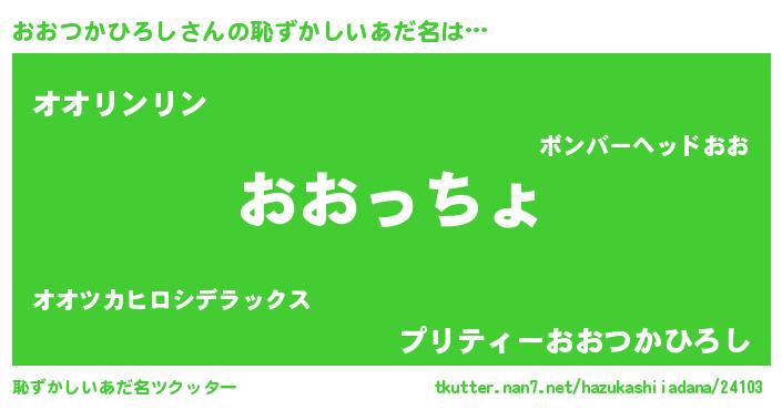 | ポケモン風あだ名 | 『オオツダネ』『ヒオオツカヒロシ』 |