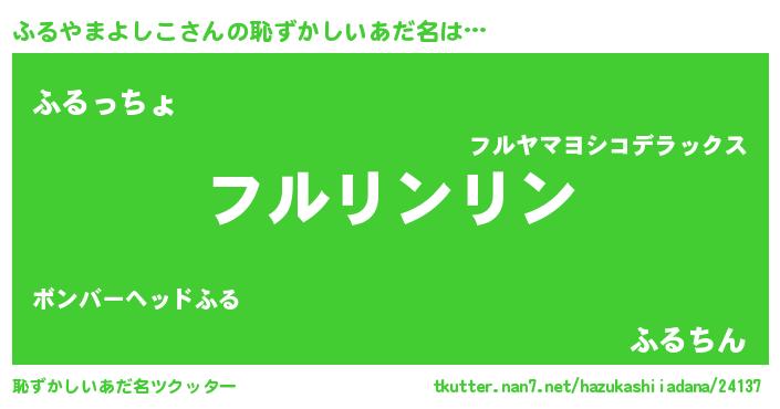 | 男性向けラノベタイトル風あだ名 | 『ふるやまよしこの嫁は女の子じゃないと思った?』 |
