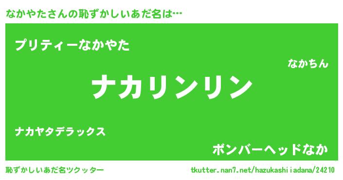| 男性向けラノベタイトル風あだ名 | 『なかやたの嫁は女の子じゃないと思った?』 |